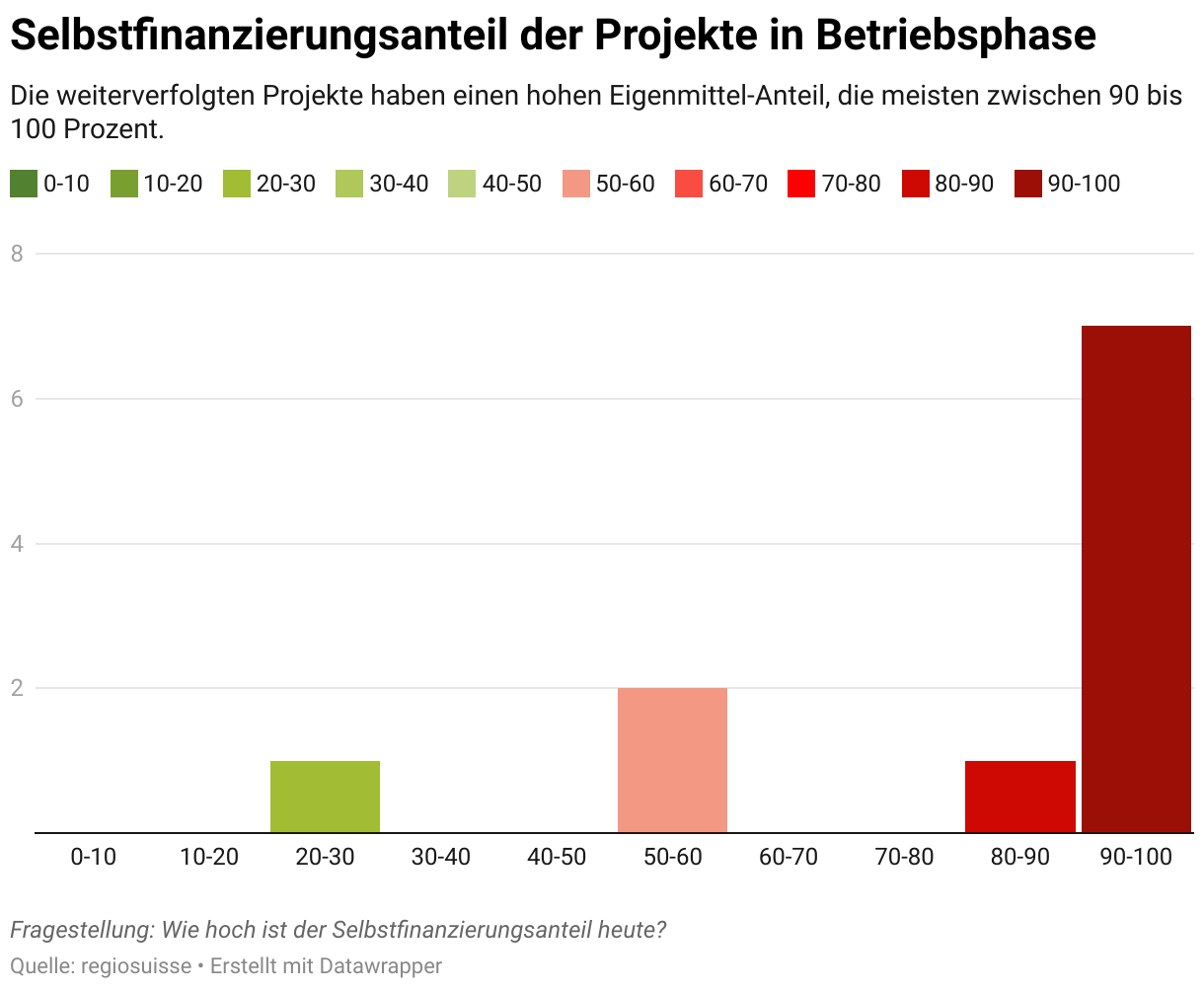 Die weiterverfolgten Projekte haben einen hohen Eigenmittel-Anteil, die meisten zwischen 90 bis 100 Prozent.