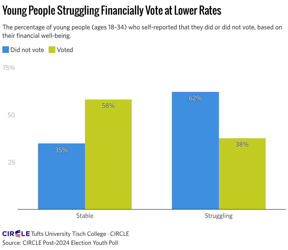 The percentage of young people (ages 18-34) who self-reported that they did or did not vote, based on their financial well-being.