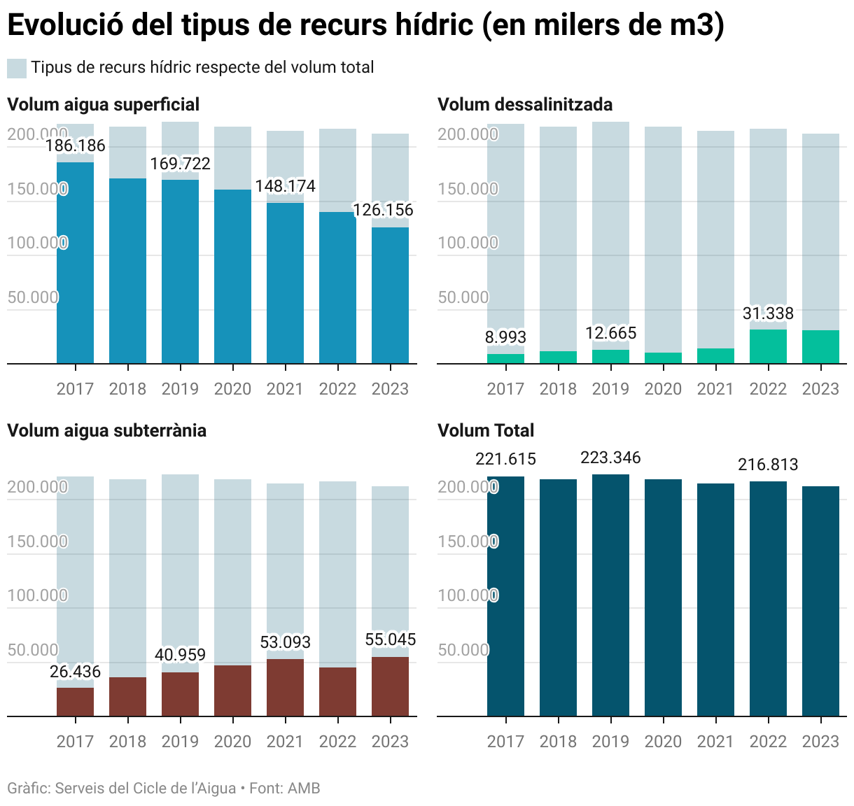 Evolució del tipus de recurs hídric (en milers de m3)