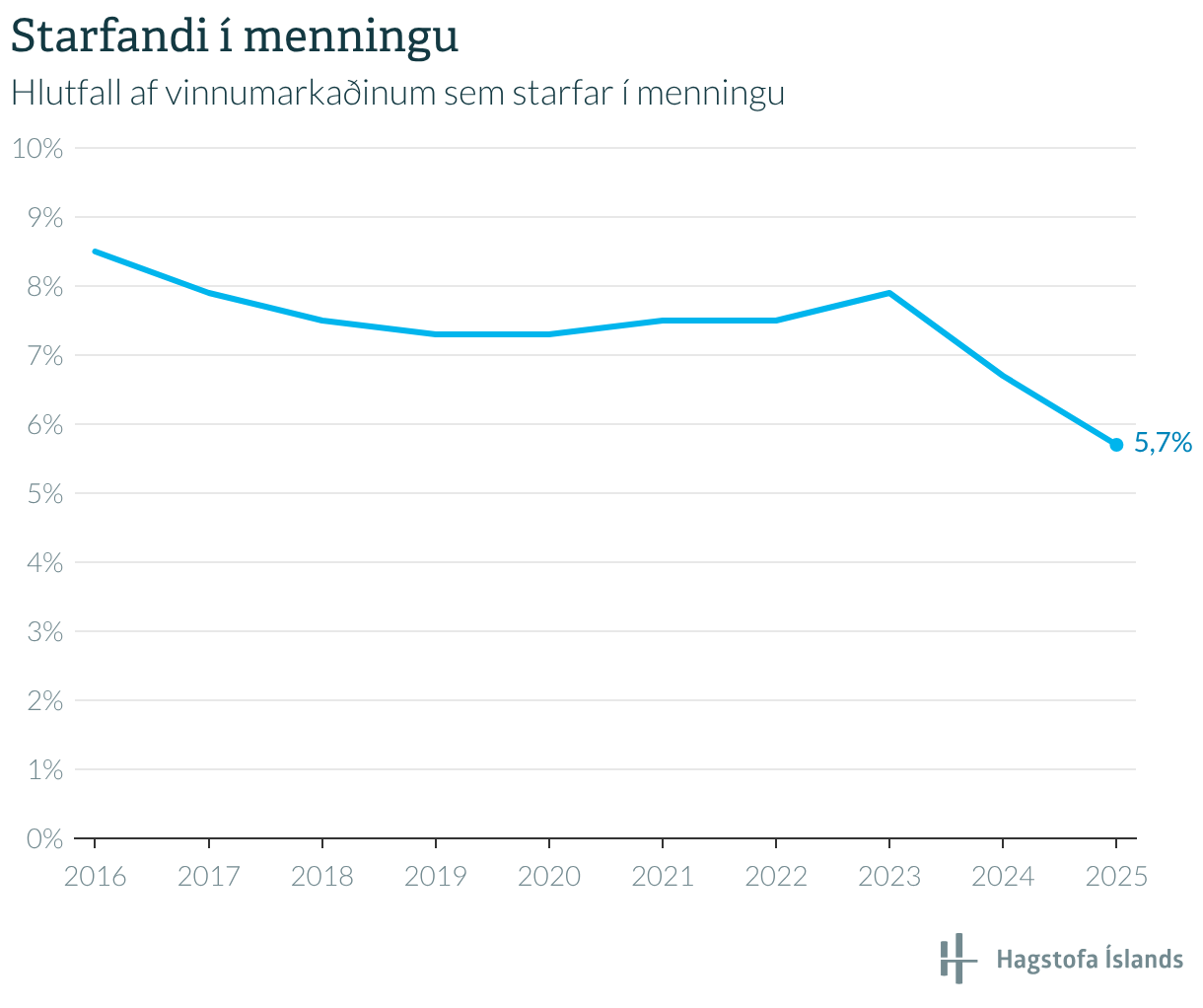 Hlutfall af vinnumarkaðinum sem starfar í menningu