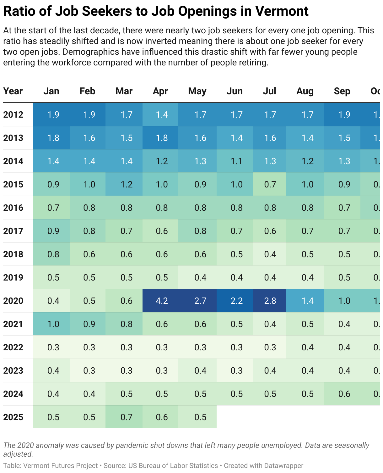 At the start of the last decade, there were nearly two job seekers for every one job opening. This ratio has steadily shifted and is now inverted meaning there is about one job seeker for every two open jobs. Demographics have influenced this drastic shift with far fewer young people entering the workforce compared with the number of people retiring.