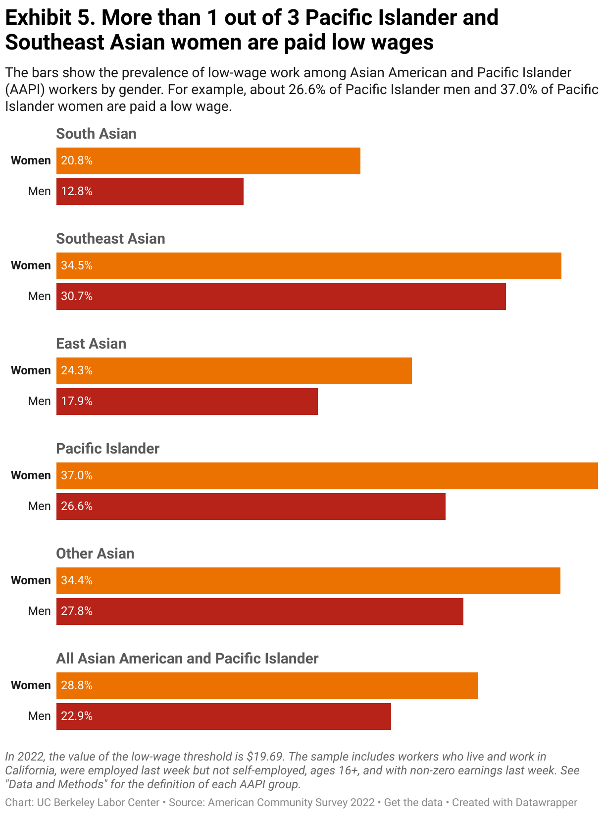 Exhibit 5. More than 1 out of 3 Pacific Islander and Southeast Asian women are paid low wages