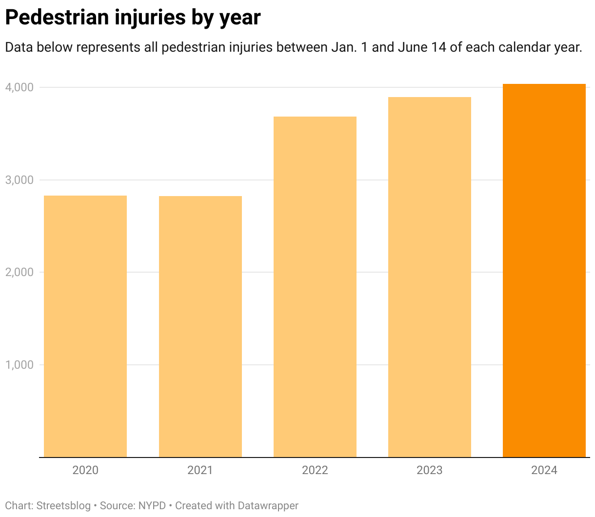 Data below represents all pedestrian injuries between Jan. 1 and June 14 of each calendar year.