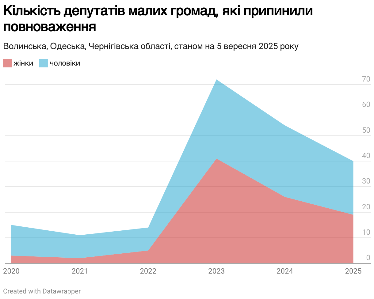 Кількість депутатів малих громад, які припинили повноваження