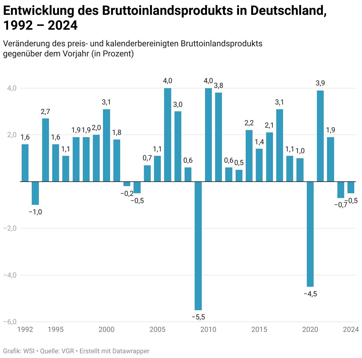Veränderung des preis- und kalenderbereinigten Bruttoinlandsprodukts gegenüber dem Vorjahr (in Prozent)