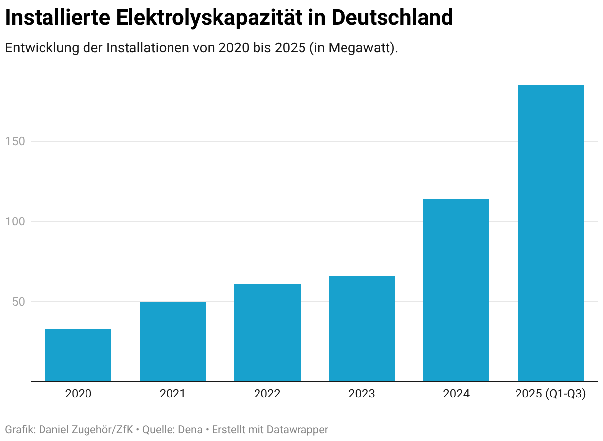 Entwicklung der Installationen von 2020 bis 2025 (in Megawatt).