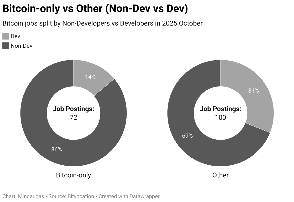 Bitcoin jobs split by Non-Developers vs Developers in 2025 October