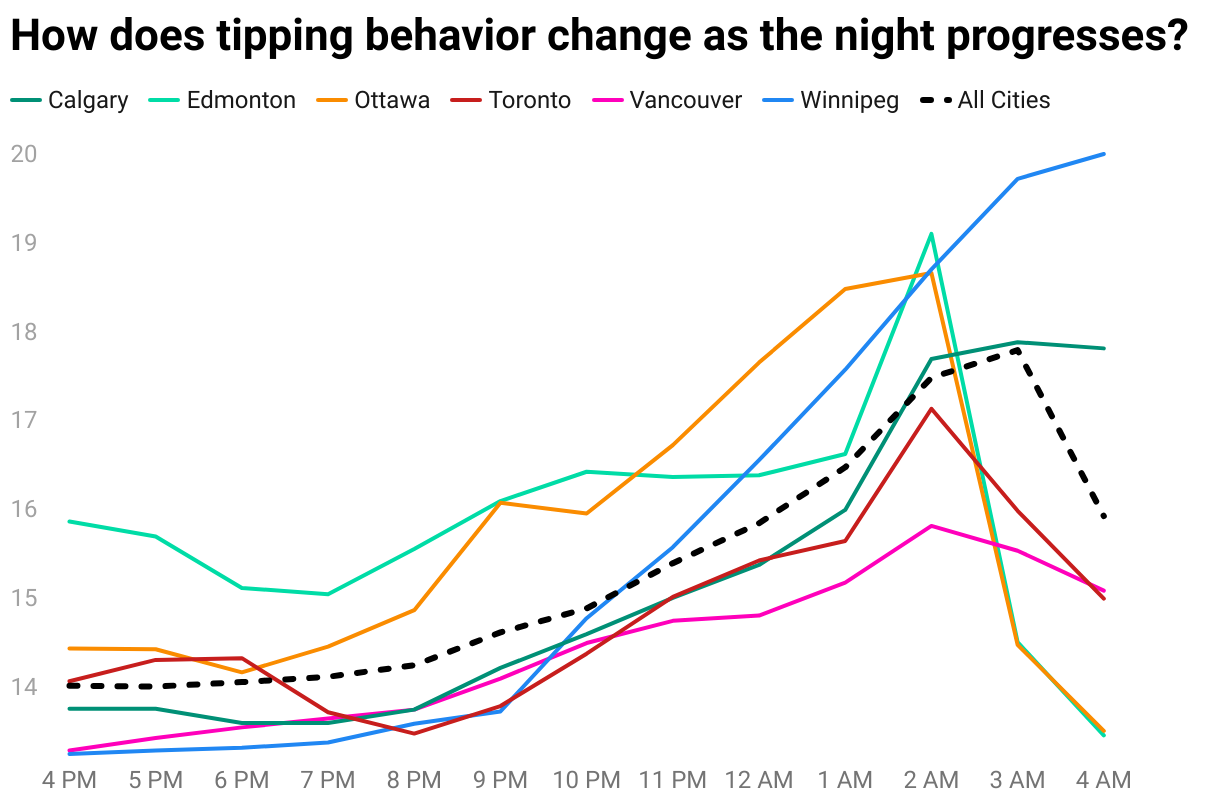 How does tipping behavior change as the night progresses?