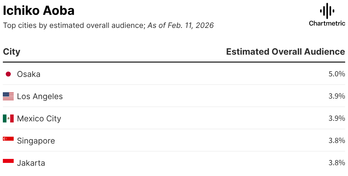 Top cities by estimated overall audience; As of Feb. 11, 2026