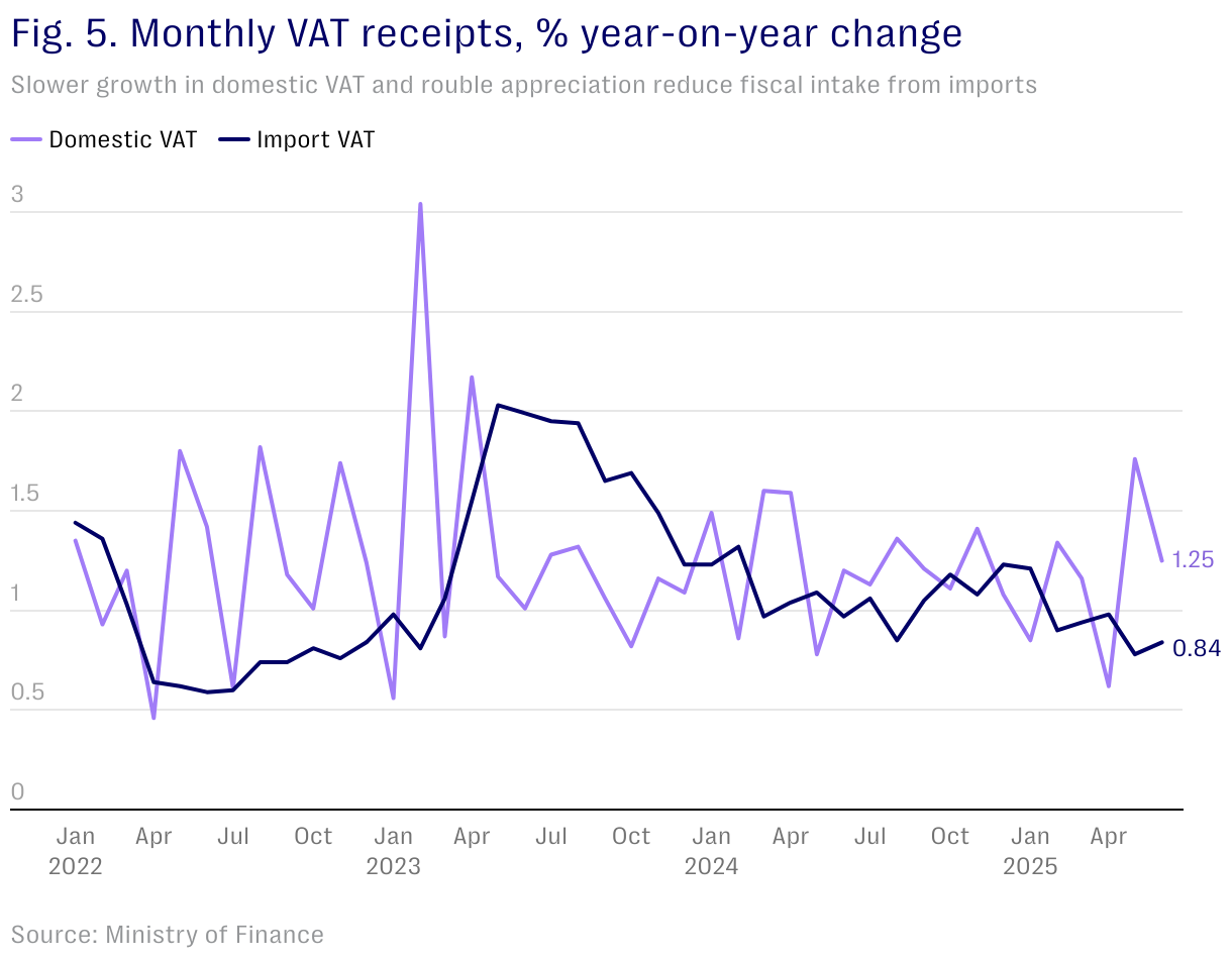 Slower growth in domestic VAT and rouble appreciation reduce fiscal intake from imports
