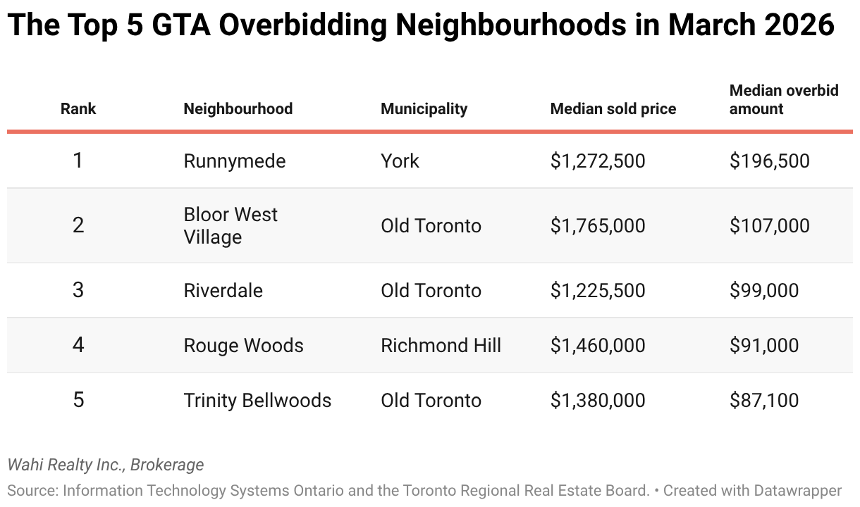 The Top 5 GTA Overbidding Neighbourhoods in March 2026