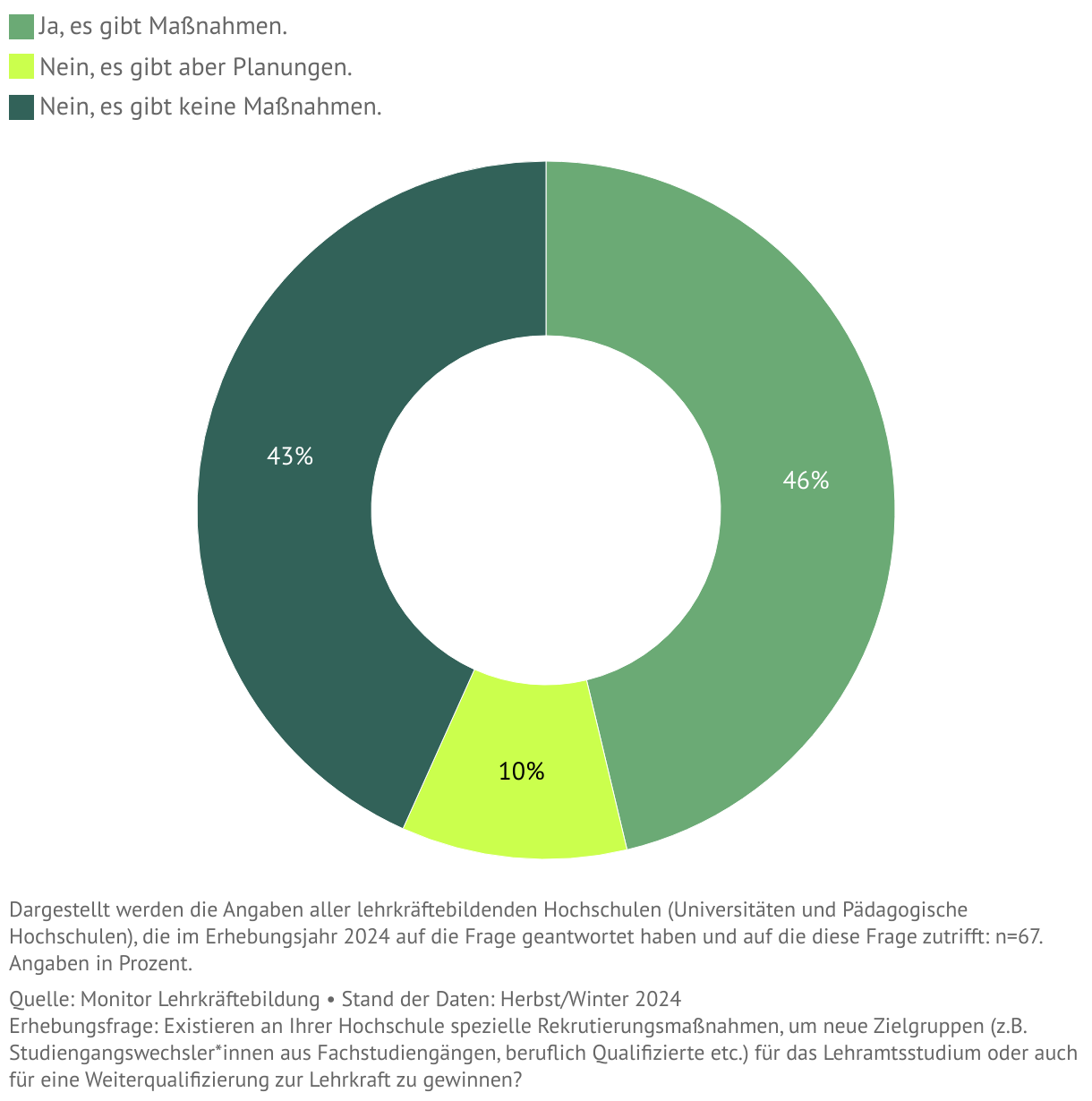 Erhebungsfrage: Existieren an Ihrer Hochschule spezielle Rekrutierungsmaßnahmen, um neue Zielgruppen (z.B. Studiengangswechsler*innen aus Fachstudiengängen, beruflich Qualifizierte etc.) für das Lehramtsstudium oder auch für eine Weiterqualifizierung zur Lehrkraft zu gewinnen?