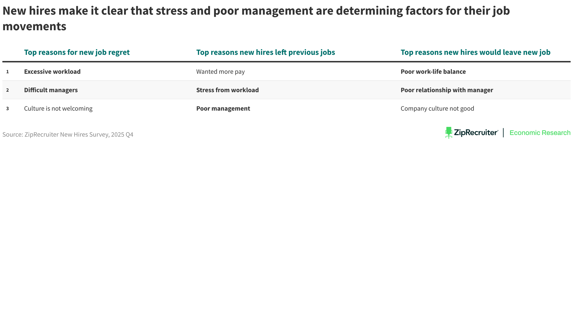 New hires make it clear that stress and poor management are determining factors for their job movements