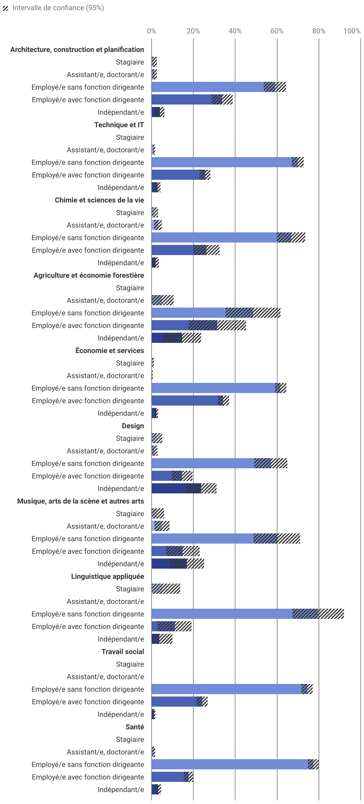 Situation dans la profession¹ des diplômés HES au niveau bachelor selon le domaine d'études