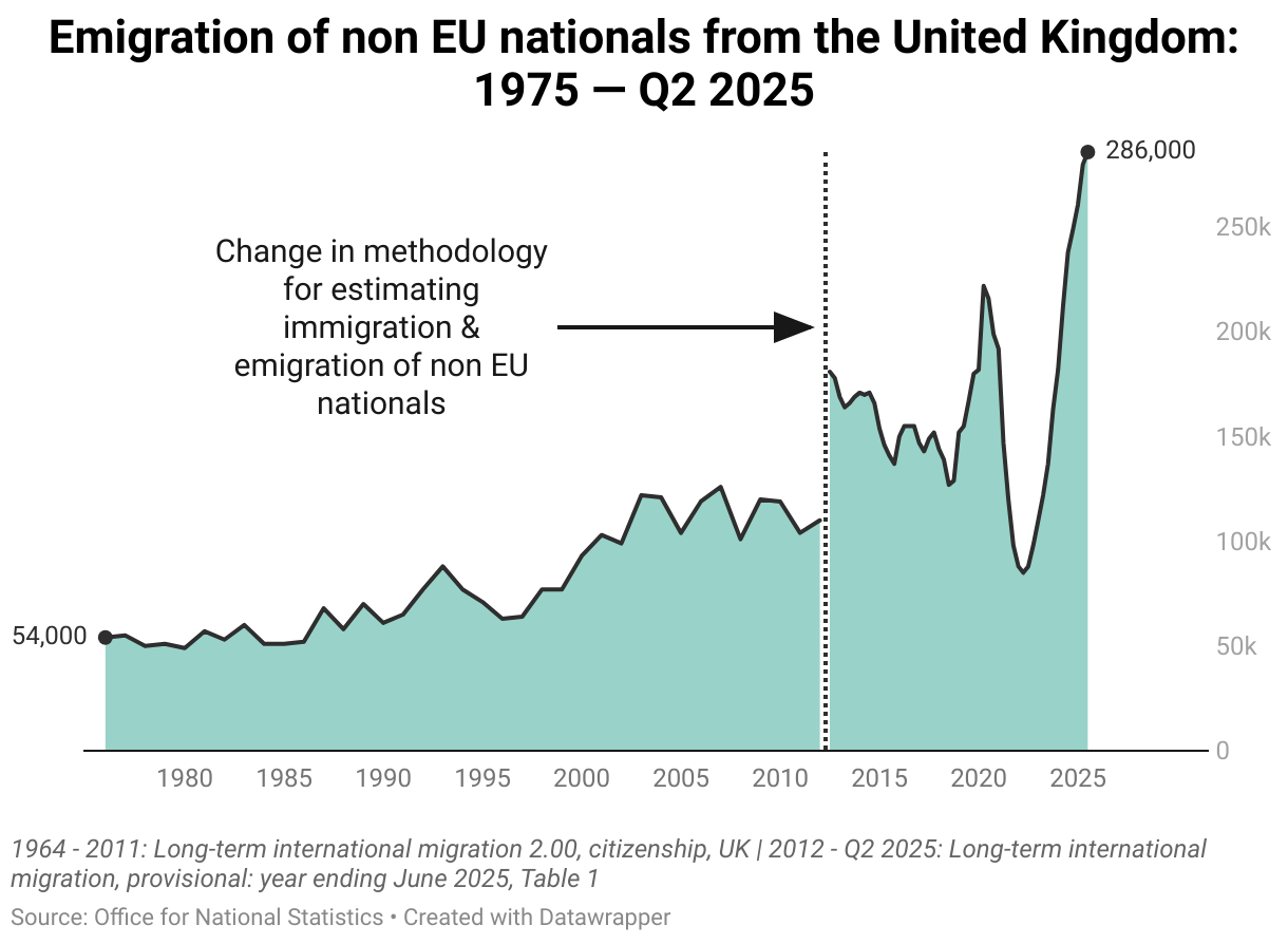Emigration of non EU nationals from the United Kingdom: 1975 — Q2 2025