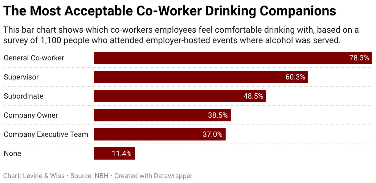 This bar chart shows which co-workers employees feel comfortable drinking with, based on a survey of 1,100 people who attended employer-hosted events where alcohol was served.