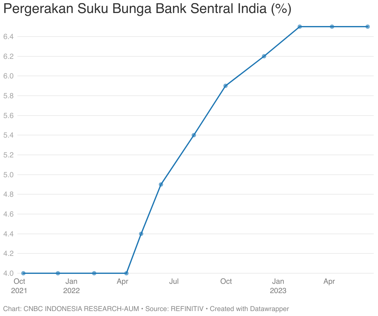 Pergerakan Suku Bunga Bank Sentral India (%)