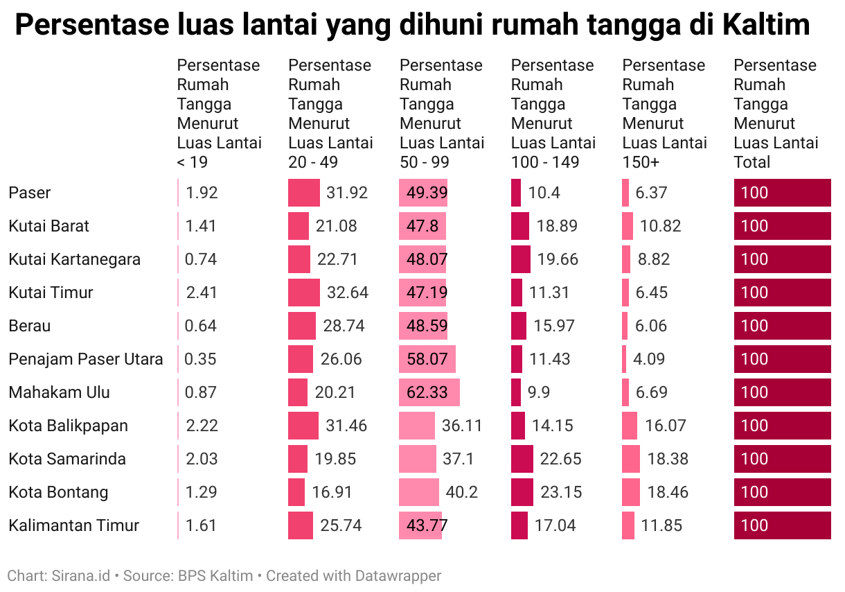 Persentase luas lantai yang dihuni rumah tangga di Kaltim