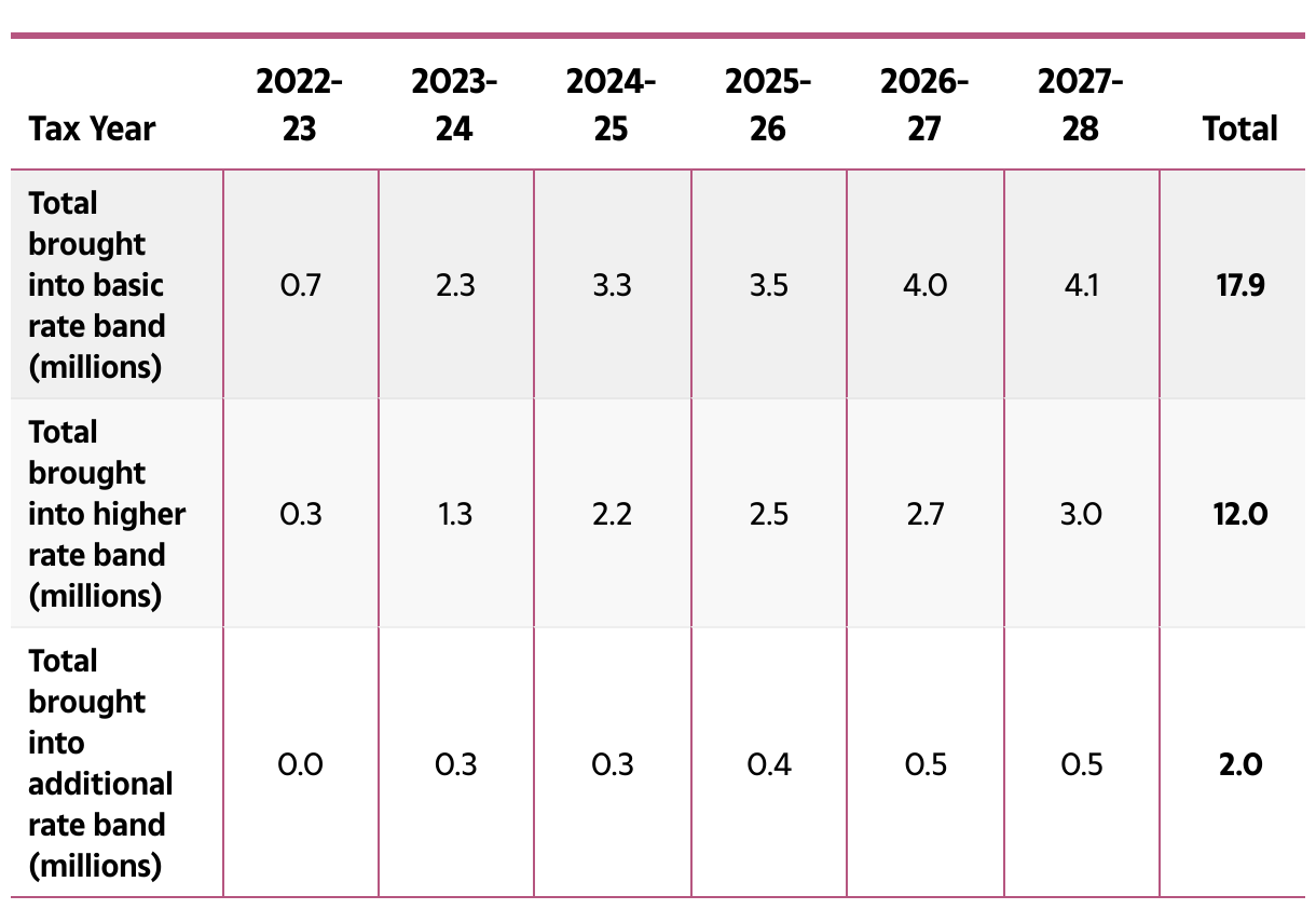 NUMBER OF PEOPLE HIT BY TAX THRESHOLD FREEZES