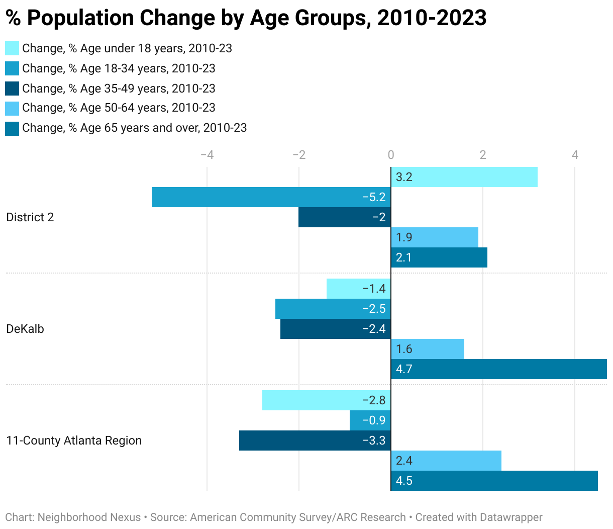 % Population Change by Age Groups, 2010-2023