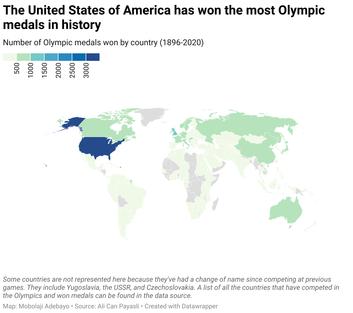 Number of Olympic medals won by country (1896-2020)