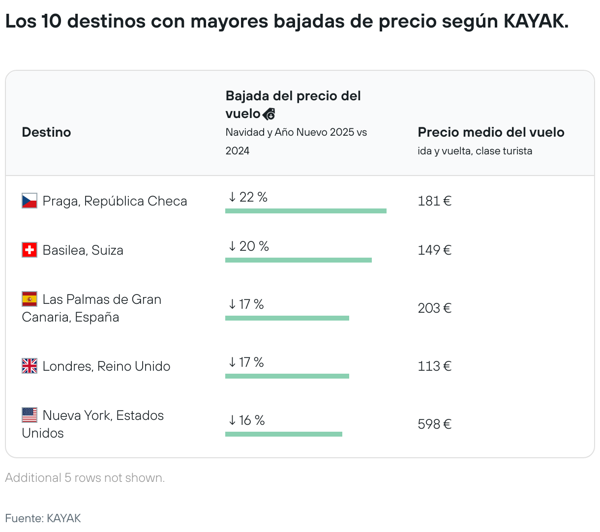 Los 10 destinos con mayores bajadas de precio según KAYAK.