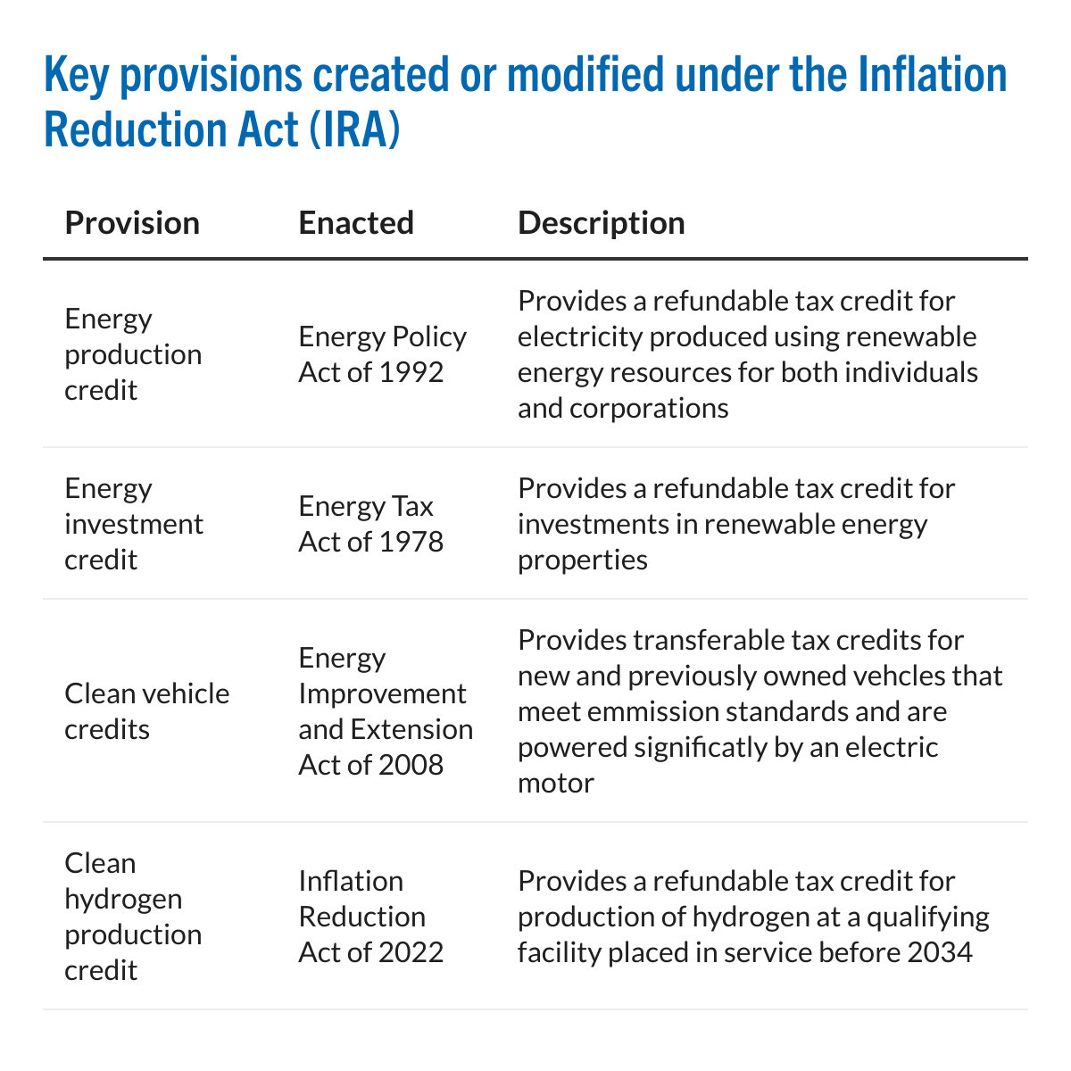 Key provisions created or modified under the Inflation Reduction Act (IRA)