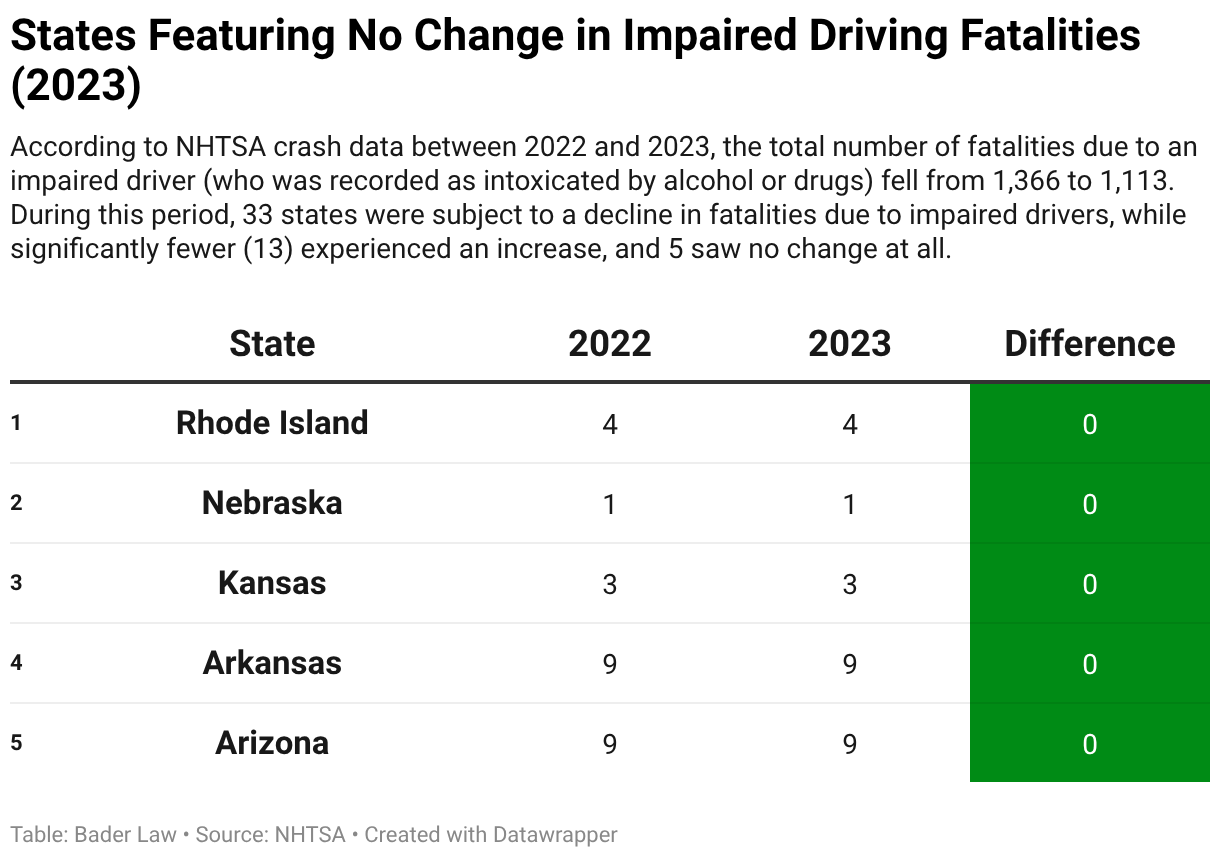 States Featuring No Change in Impaired Driving Fatalities (2023)