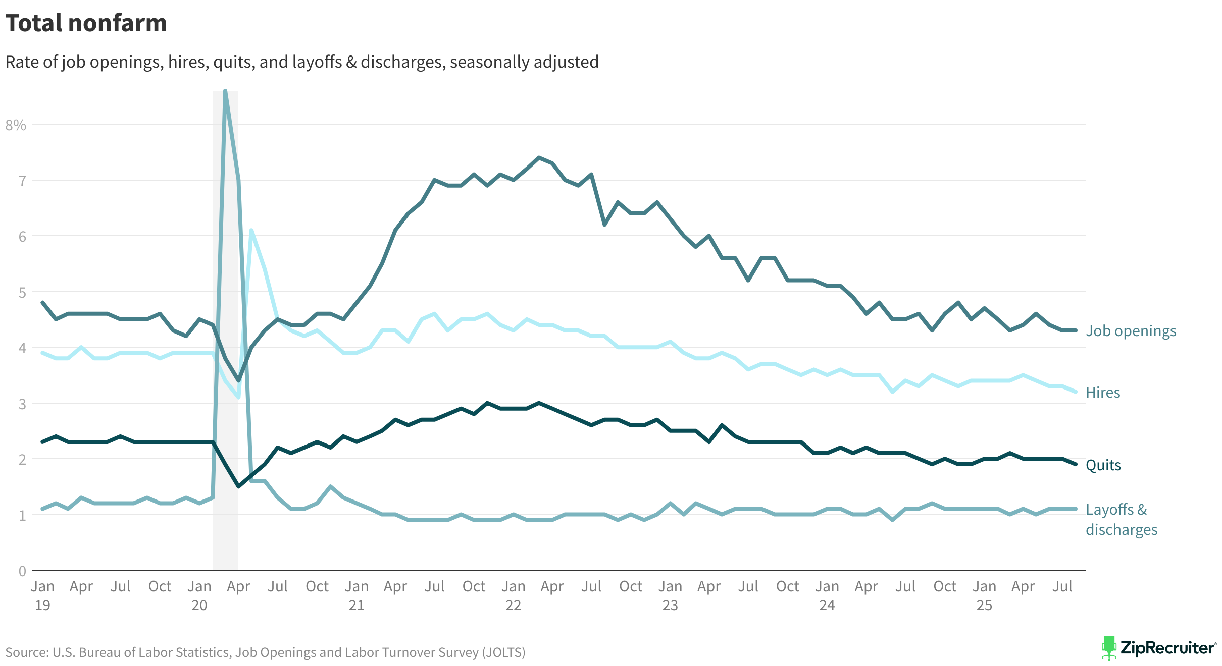 Rate of job openings, hires, quits, and layoffs & discharges, seasonally adjusted