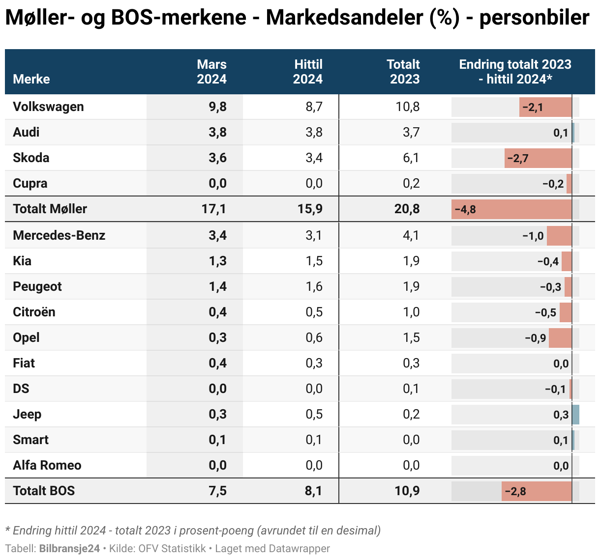 Møller- og BOS-merkene - Markedsandeler (%) - personbiler