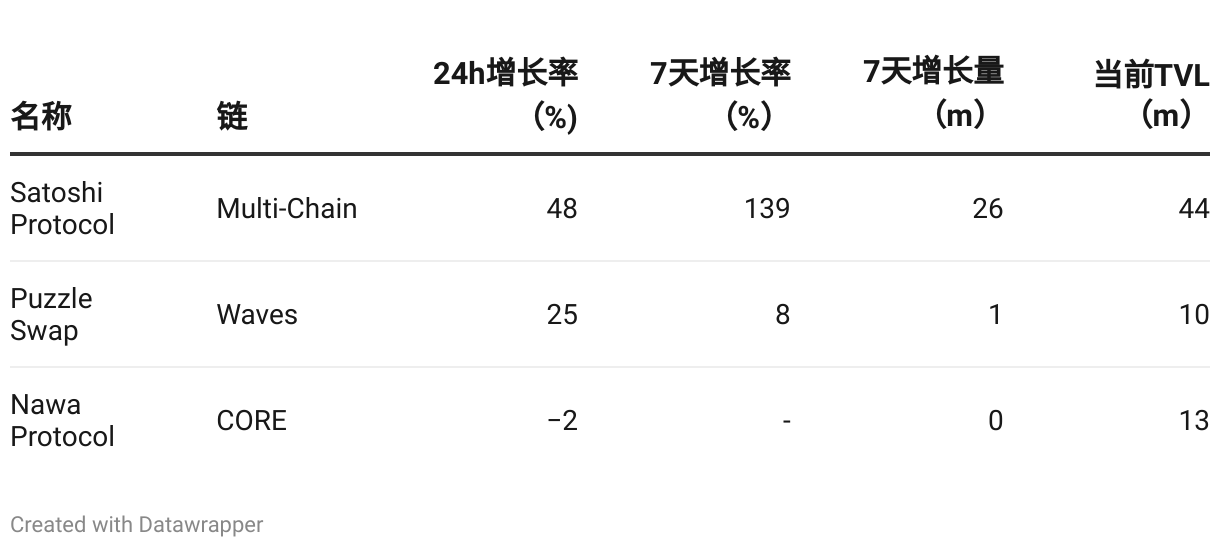项目列表:TVL > 5m & (7天新增 | 24h TVL变化 > 10%)