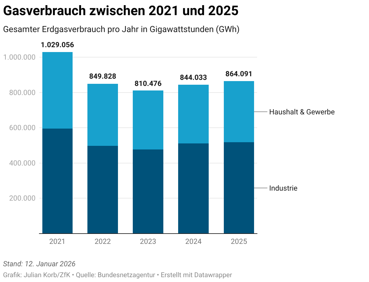 Gesamter Erdgasverbrauch pro Jahr in Gigawattstunden (GWh)