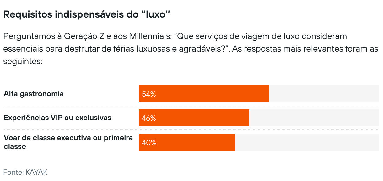 Perguntamos à Geração Z e aos Millennials: “Que serviços de viagem de luxo consideram essenciais para desfrutar de férias luxuosas e agradáveis?”. As respostas mais relevantes foram as seguintes: