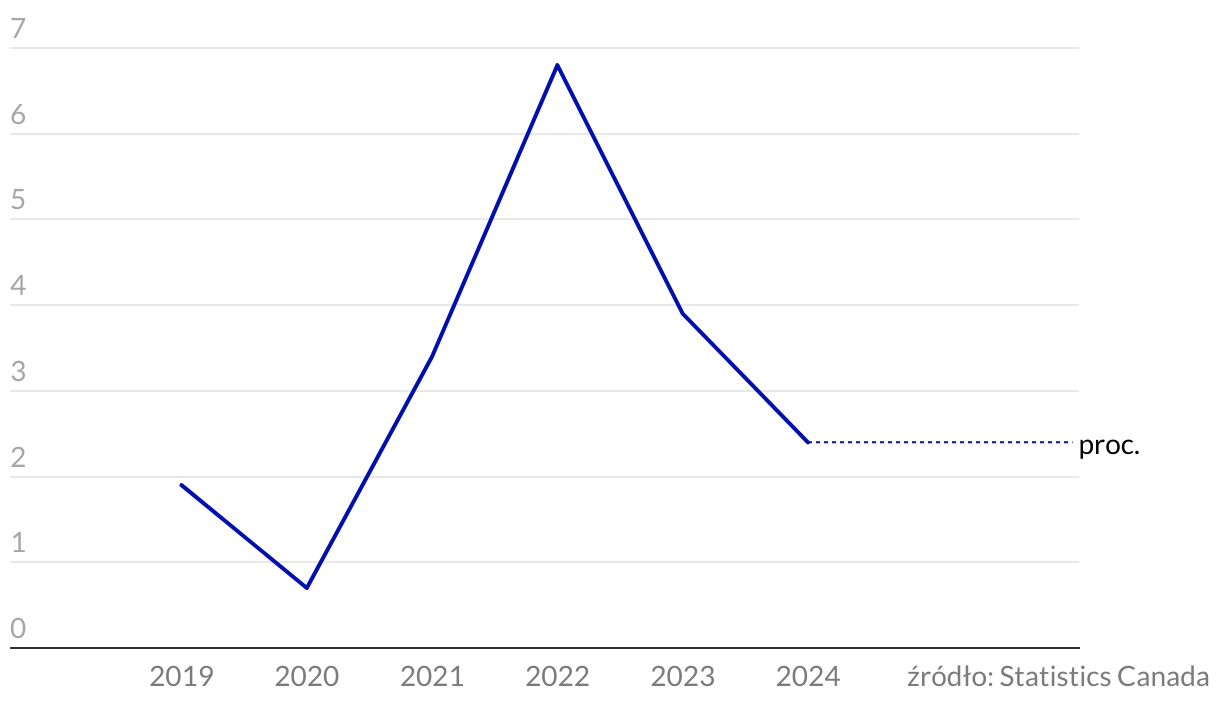 Inflacja (CPI) w Kanadzie w latach 2019-2024