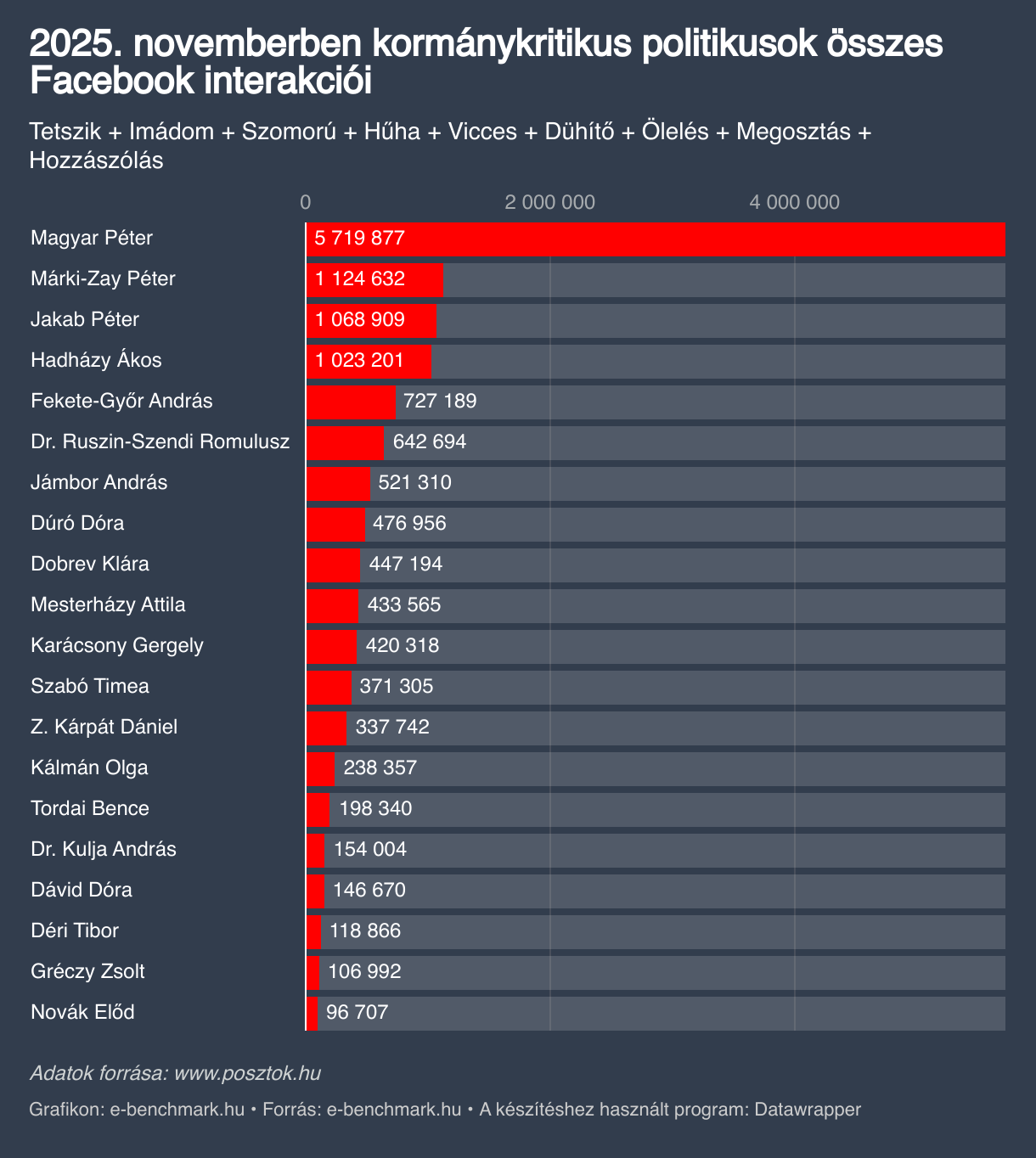 2025. novemberben kormánykritikus politikusok összes Facebook interakciói