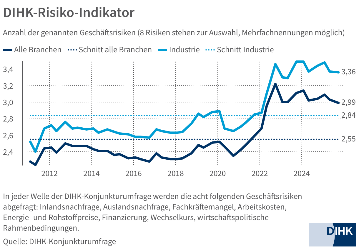 Anzahl der genannten Geschäftsrisiken (8 Risiken stehen zur Auswahl, Mehrfachnennungen möglich)