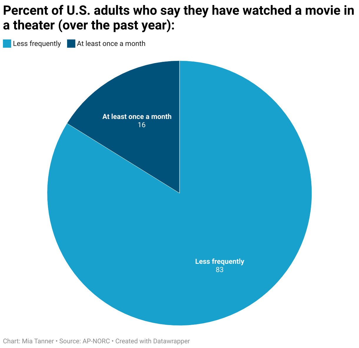 Percent of U.S. adults who say they have watched a movie in a theater (over the past year):