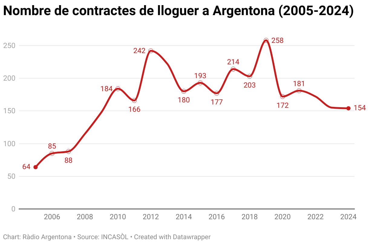 Nombre de contractes de lloguer a Argentona (2005-2024)