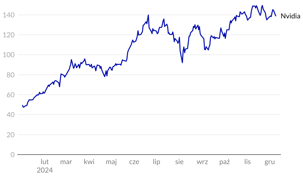 Kurs akcji spółki Nvidia (w dolarach amerykańskich)