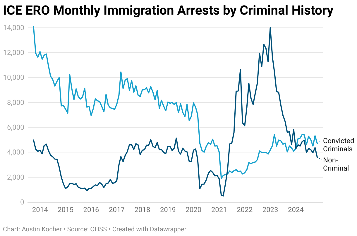 ICE ERO Monthly Immigration Arrests by Criminal History