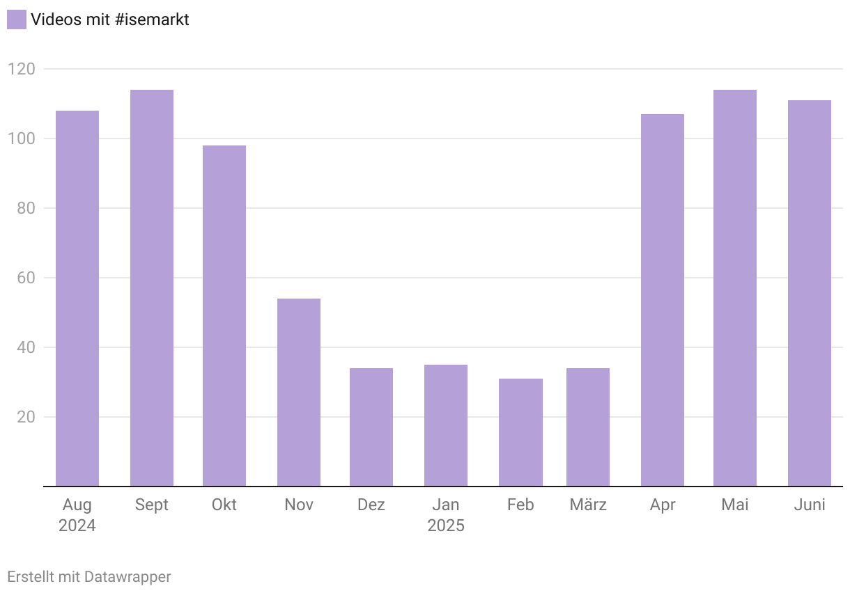 Anzahl der Videos, die mit dem Hashtag #isemarkt zwischen August 2024 und Juli 2025 veröffentlicht wurden.