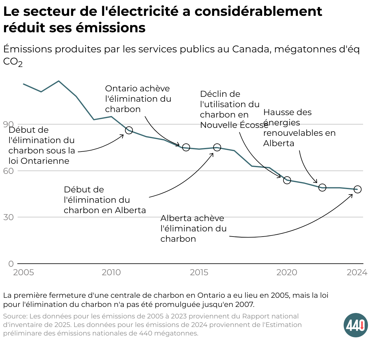 Émissions produites par les services publics au Canada, mégatonnes d'éq CO2