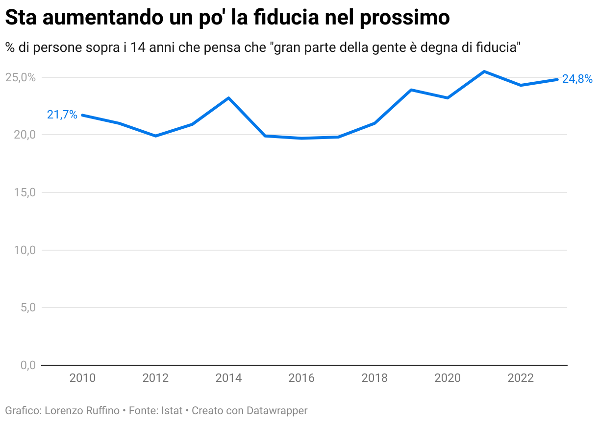 % di persone sopra i 14 anni che pensa che "gran parte della gente è degna di fiducia"