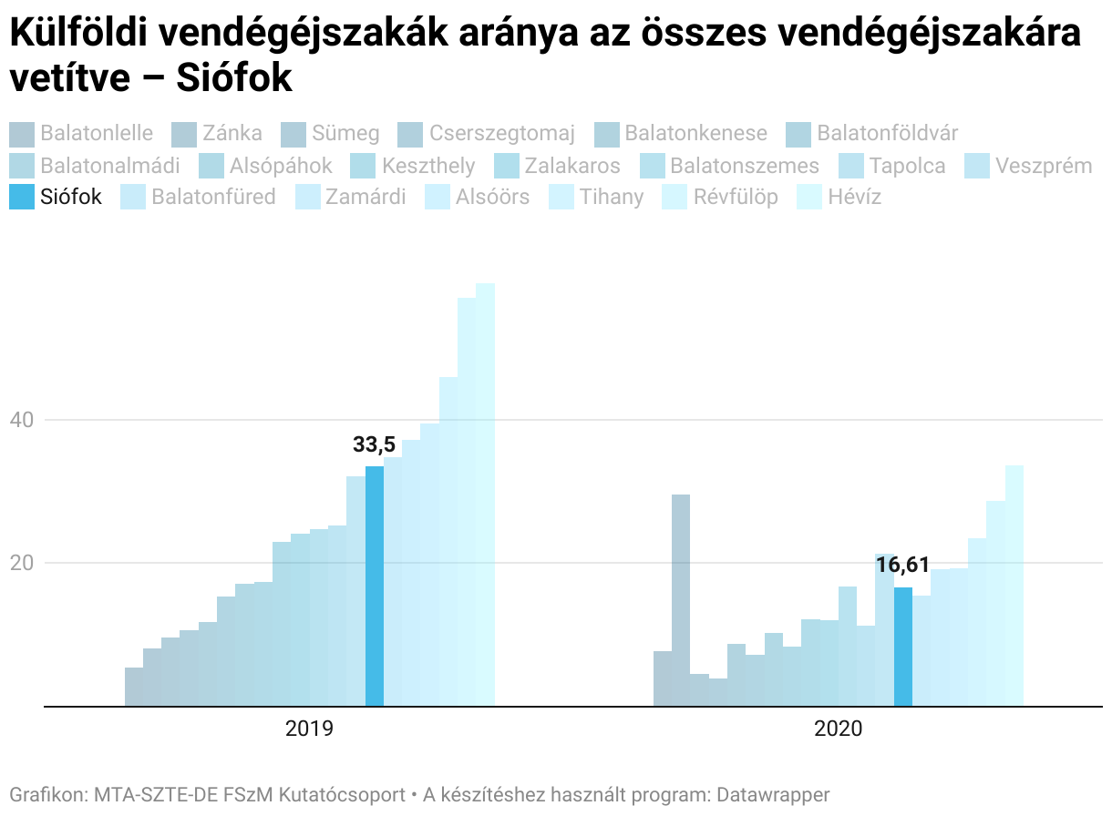 Külföldi vendégéjszakák aránya az összes vendégéjszakára vetítve – Siófok