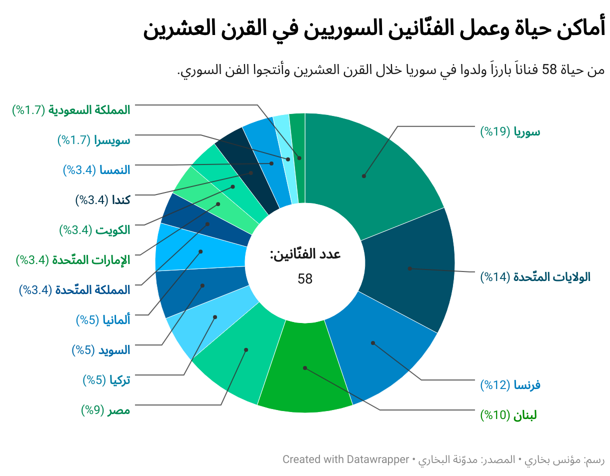 من حياة 58 فناناَ بارزاَ ولدوا في سوريا خلال القرن العشرين وأنتجوا الفن السوري.