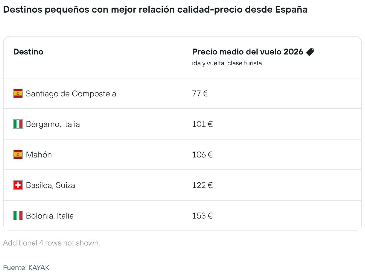 Destinos pequeños con mejor relación calidad-precio desde España