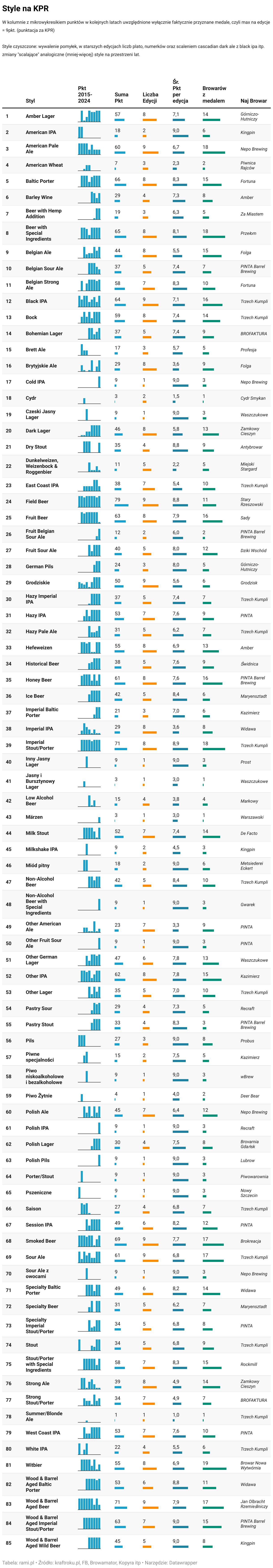 W kolumnie z mikrowykresikiem punktów w kolejnych latach uwzględnione wyłącznie faktycznie przyznane medale, czyli max na edycje = 9pkt. (punktacja za KPR)