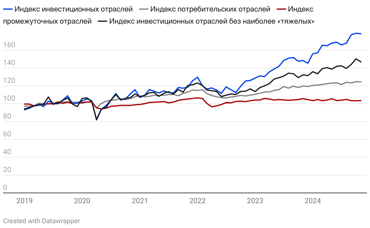 К «наиболее „тяжелым“» отраслям отнесены производства готовых металлических изделий и прочих транспортных средств, которые связаны с ВПК.