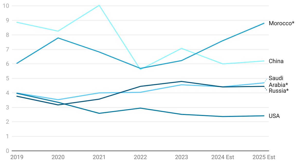 DAP and MAP exports, million metric tonnes