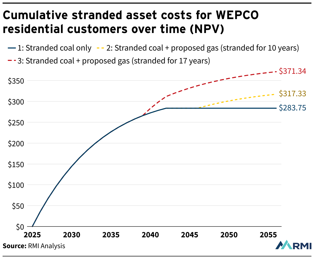Cumulative stranded asset costs for WEPCO residential customers over time (NPV)